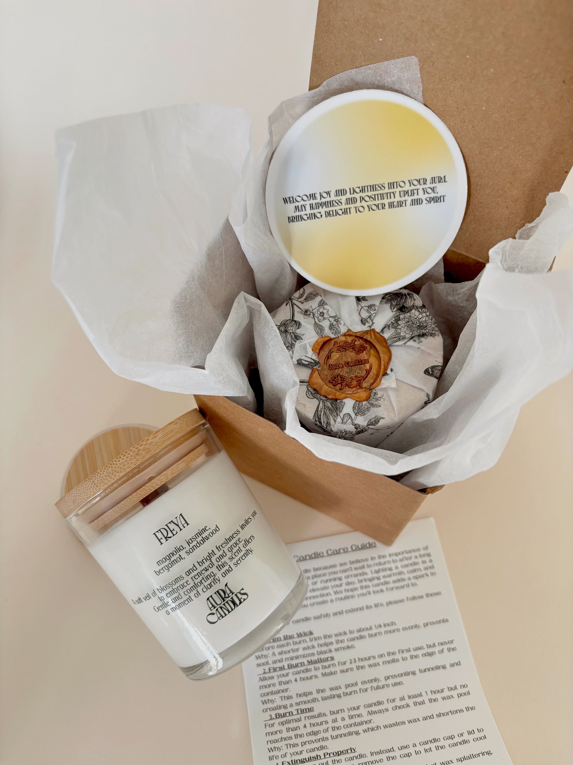 Graceful and luminous, Freya blends magnolia, jasmine, bergamot, and sandalwood into a scent that feels like a quiet strength. Let it guide you into softness, beauty, and your own divine power.