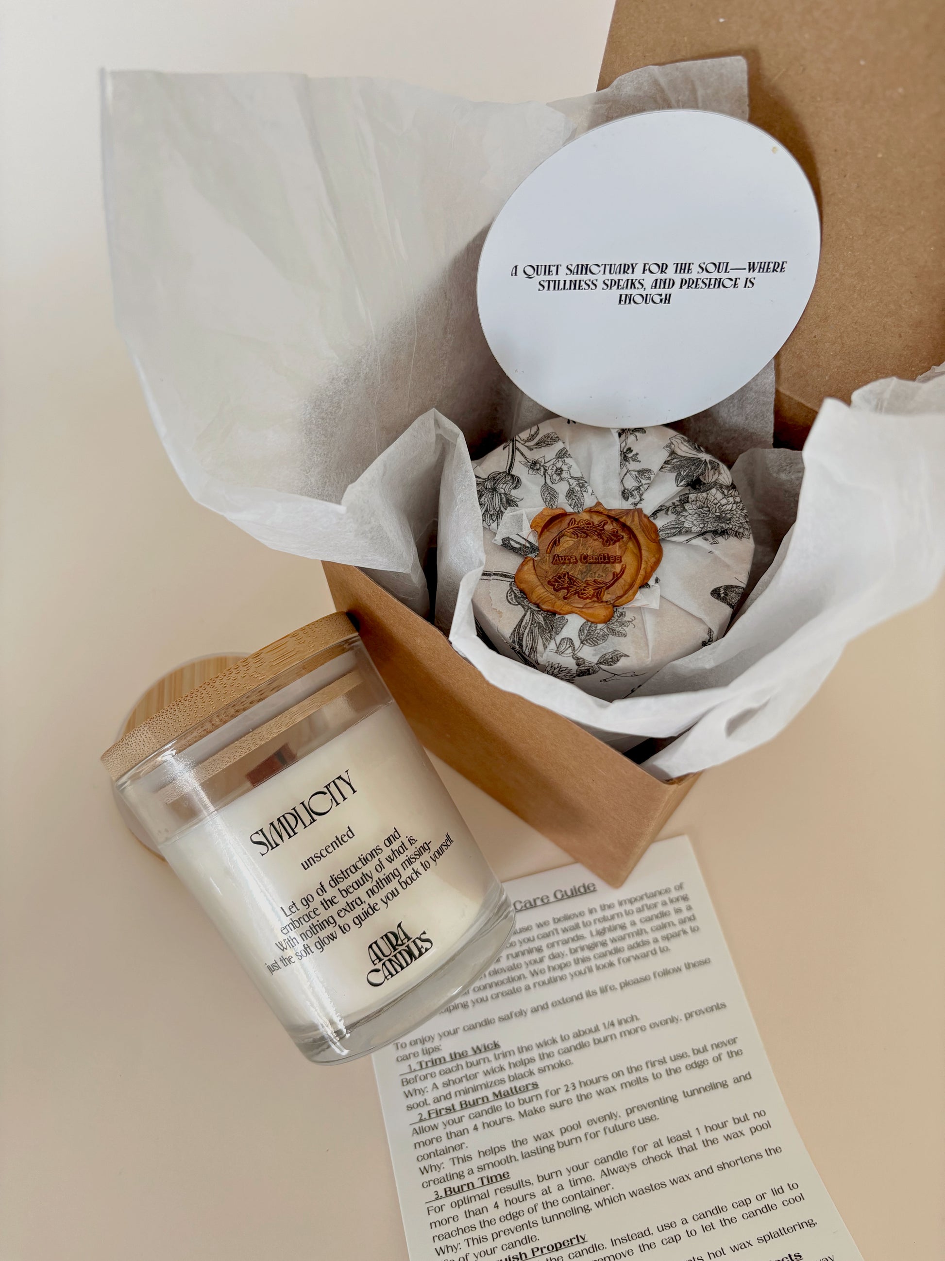 Embrace the beauty of stillness with Simplicity, our unscented candle designed for quiet moments and mindful presence.